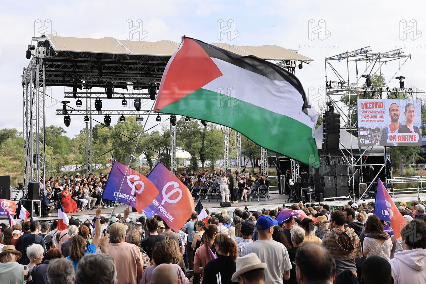 Closing meeting with Jean Luc Melenchon, Mathilde Panot and Manuel Bompard at the AMFIS 2024 in Chateauneuf sur Isere on August 25, 2024.