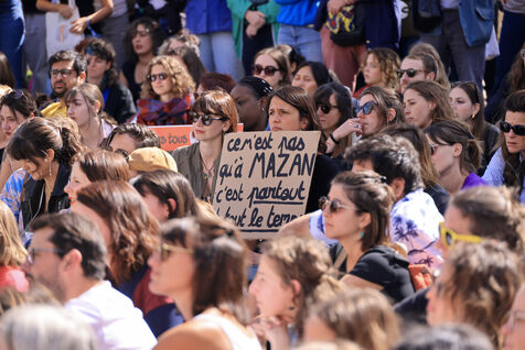 Gathering in support of Gisele Pelicot at the call of feminist collectives, associations and activists, Nantes, western France, September 14, 2024.