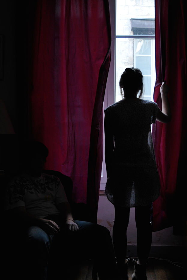 J’ai travaillé à partir du texte de Madeline Roth pour un projet d’édition chez Où sont les enfants. Le principe de la collection étant de faire un « roman photographique », dans un dialogue permanent du texte et des images. Je lis et relis ce texte, et déjà, des images apparaissent. Des paysages, beaucoup, pour que l’image ne vienne pas illustrer les mots, mais les gonfler, leur donner un espace de résonance. Je tente de photographier les images mentales qui font surface, sans plus revenir vers le texte. Et je me laisse emporter par ces fragments de paysages ou de corps à fleur de peau, ces lumières teintées par la nuit. Dès le départ, une envie de ne pas incarner les personnages, qu’ils restent dans l’ombre, à l’abri du texte. Elle a choisi de ne pas trop en dire, je choisis de ne pas montrer. Des images comme une amorce seulement, libres, fugaces ; des images en fuite. « Elle a dû courir les pieds nus dans les talus s’arracher la peau aux rochers pour finir transie de froid derrière la chapelle, à prier pour que la mort l’emmène. Et puis elle est rentrée. Parce que pendant toutes ces années, Laura s’est accrochée. Quelque chose qui est peut-être un peu d’amour un peu d’espoir l’a tenue en vie. Quelque chose qui s’est essoufflé pendant dix ans et qui a fini par s’écrouler, parce qu’il n’y avait plus rien. » Madeline Roth Septième