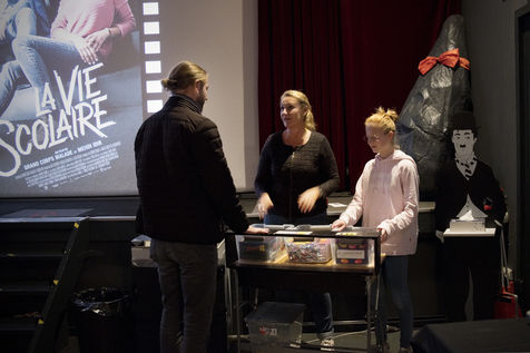 Le cinéma le Foyer à Bousbecque est entièrement tenu par des bénévoles. Cinéma d'art et essai et également salle de théatre. Philippe et Chantal Caron sont les deux bénévols qui l'ouvrent presque tous les jours, se chargent de la programmation etc. Ce samedi soir là, le film "La vie scolaire est projeté". Philippe et Chantal accueillent les spectateurs, Arnaud est à la caisse, Eric projette le film, sa fille Léa vend des friandises avec Valérie.