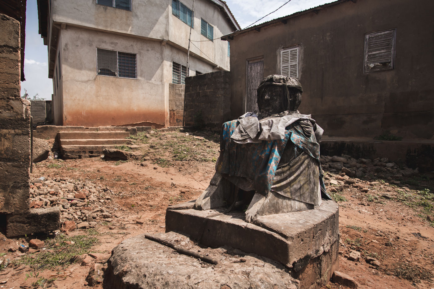 However, hidden from view, the ancestral songs and incantations still resound. Remaining the majority religion of the country, voodoo is discreet. Hidden by the darkness of the night or behind the walls of convents, voodoo priests and priestesses continue their offices, guardians of an oral heritage handed down since the dawn of time. Symptomatic of the pressure that weighs on these beliefs today, the gradual disappearance of the public space is for many followers the first signs of a predicted decline.