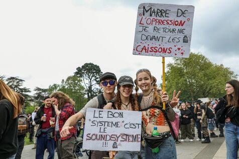 Festive protest on April 12, 2025 in Nantes where hundreds people gathered to defend techno music and protest against the criminalization of free-party in France.