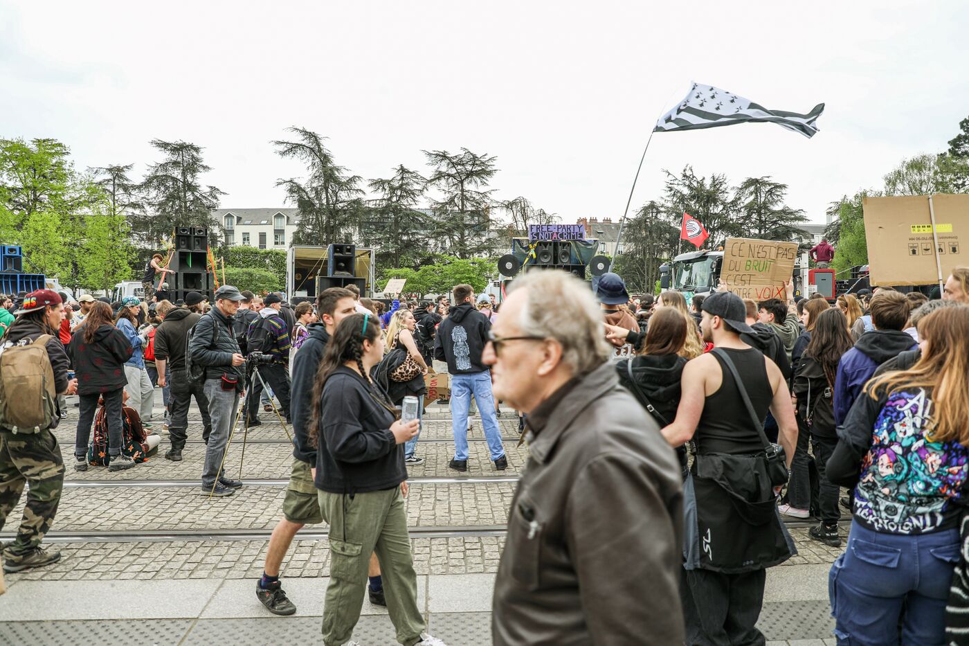Manifestation festive le 12 avril 2025 à Nantes où plusieurs centaines de personnes se sont rassemblées pour défendre la musique techno et protester contre la pénalisation des free-party.