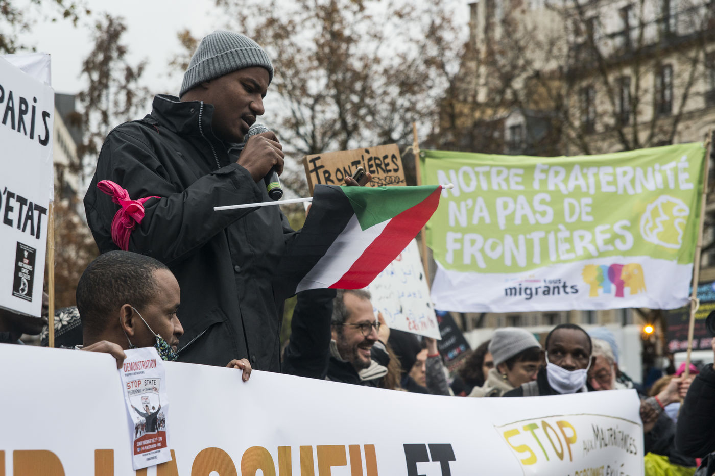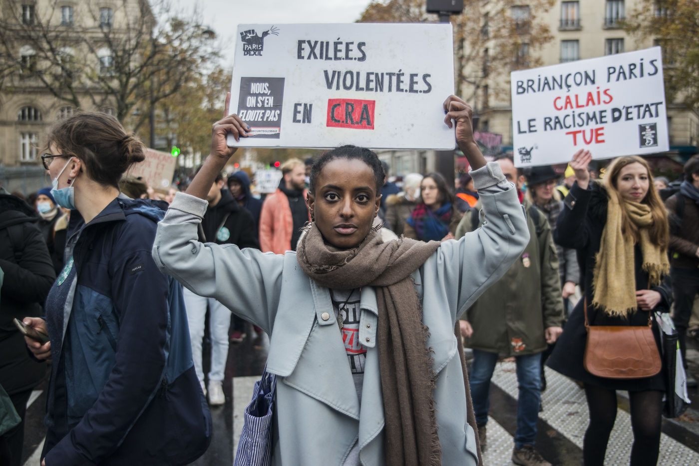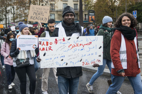 The calasian collective HungerAtBorders (FaimAuxFrontieres) organised a protest this sunday 21st of November in Paris from Place de La Bataille de Stalingrad to Place de la République after the end of a hungerstrike by activists. Hundreds of people participated in the demonstration against violence towards people in exile.