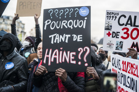 Paris - Demonstration against violence towards exiled people in France