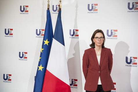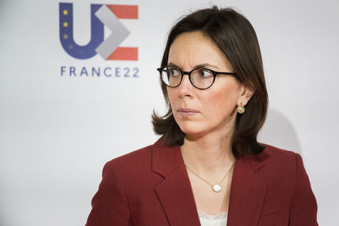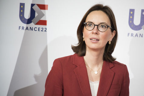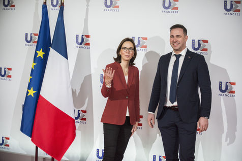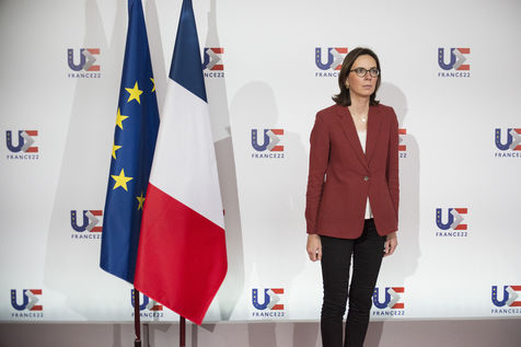 France, Strasbourg, 2022-03-17. La ministre francaise de la transformation et du service public Amélie de Montchalin accueille ses homologues europeens avant une conference dans le cadre de la presidence francaise de l Union Europeenne a Strasbourg. Photographie par Martin Lelievre / APJ / Hans Lucas.