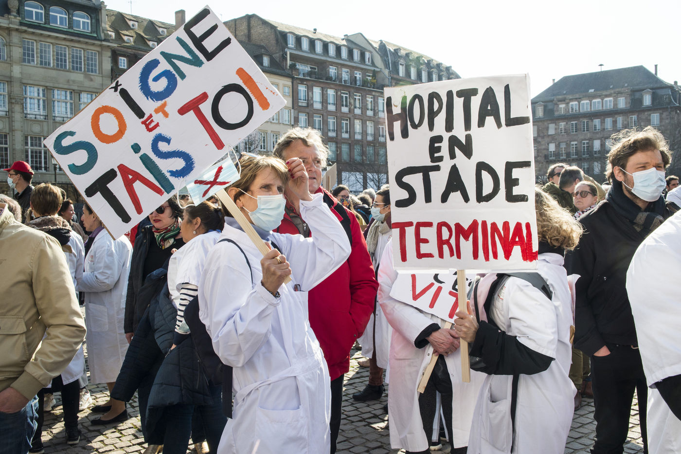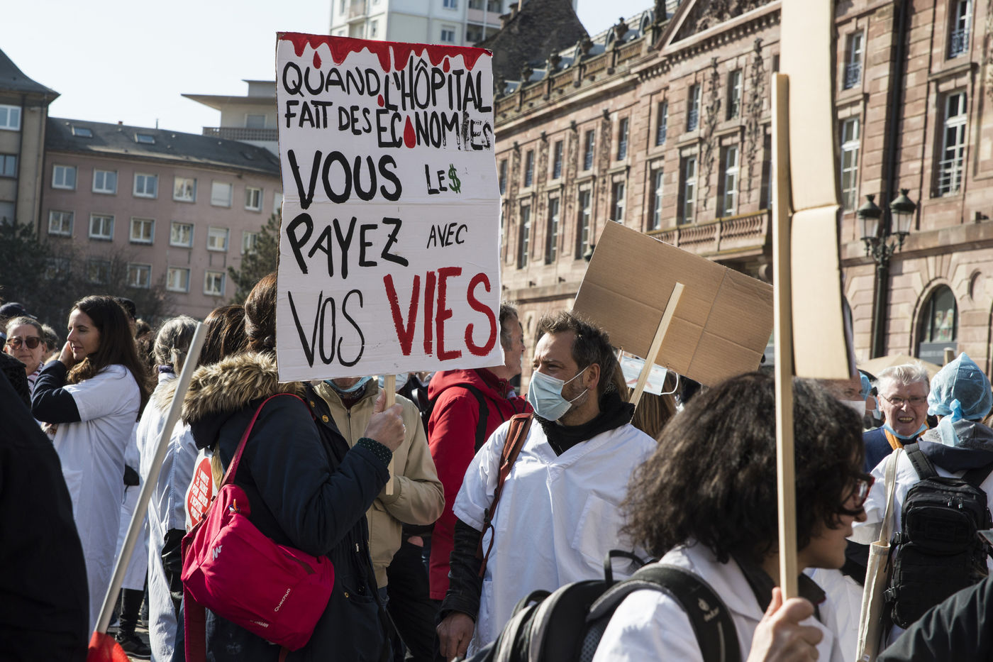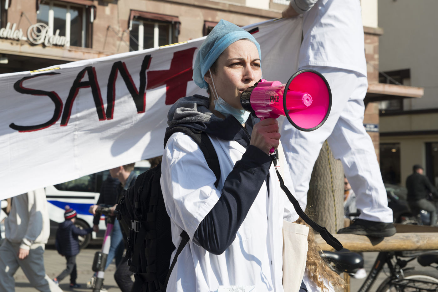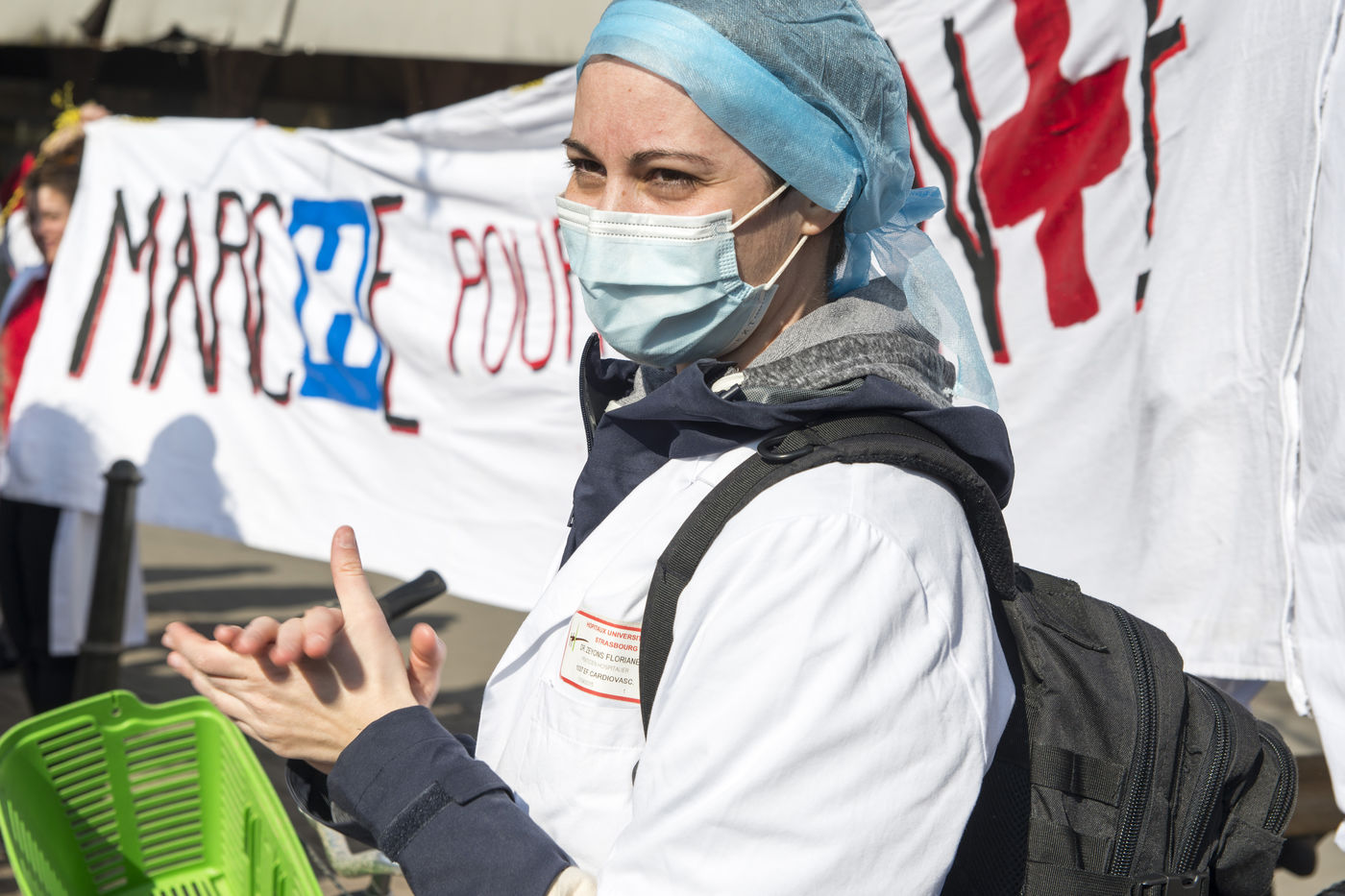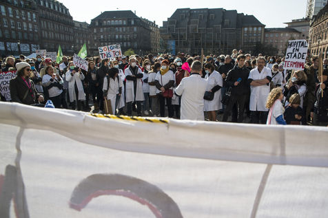 Hospital personel protest to alert on the bad state of the public health services and hospitals in Strasbourg.