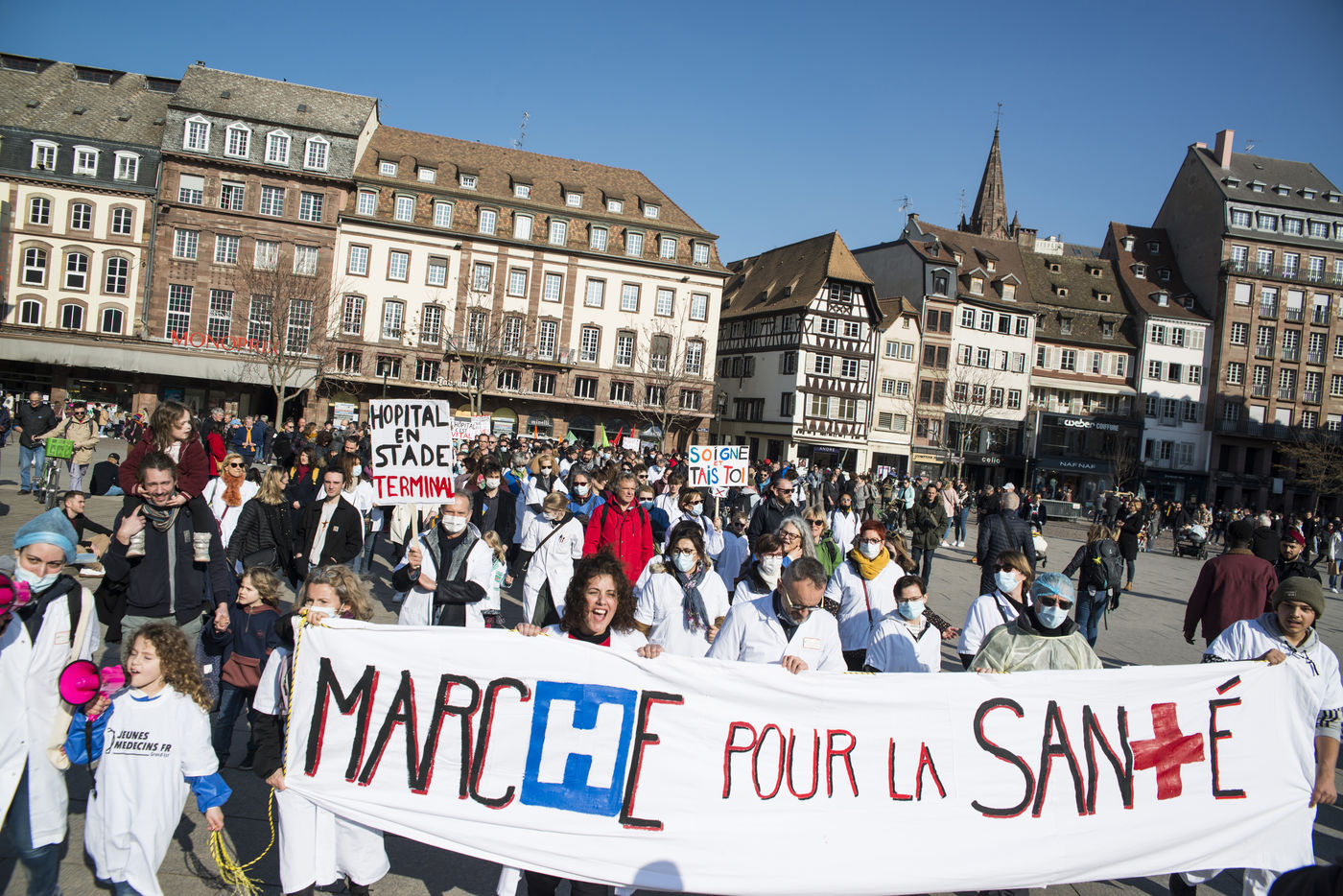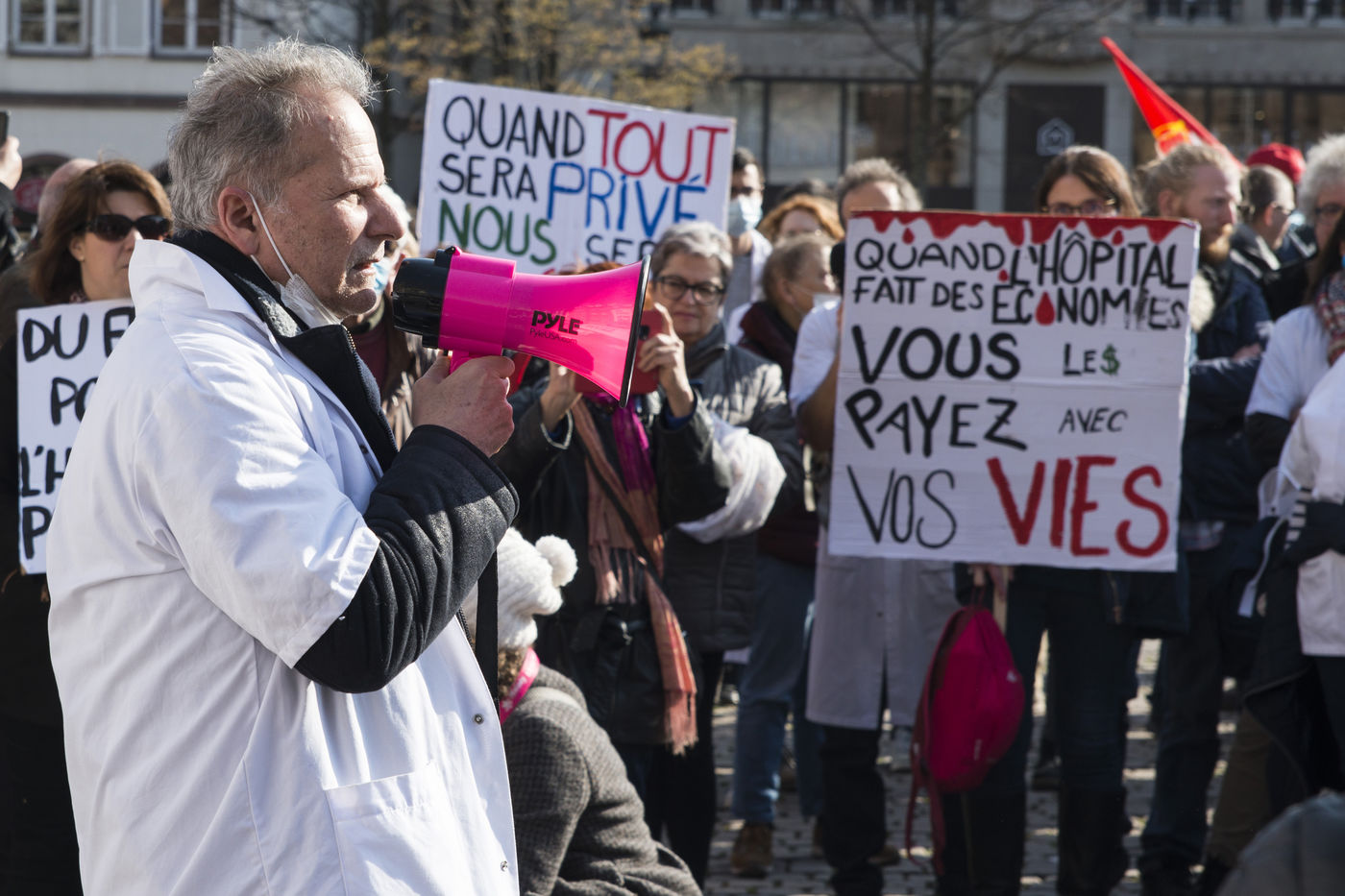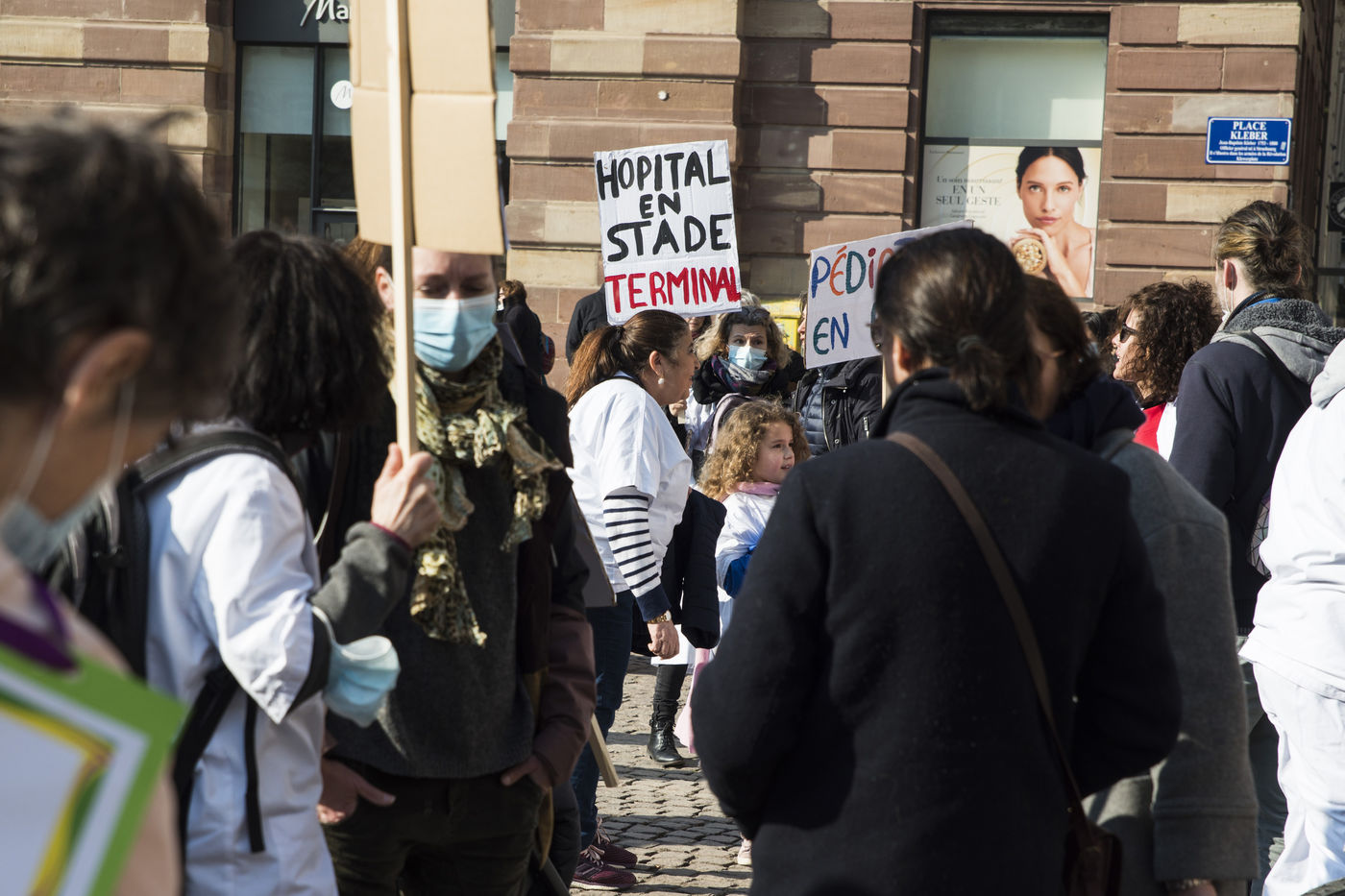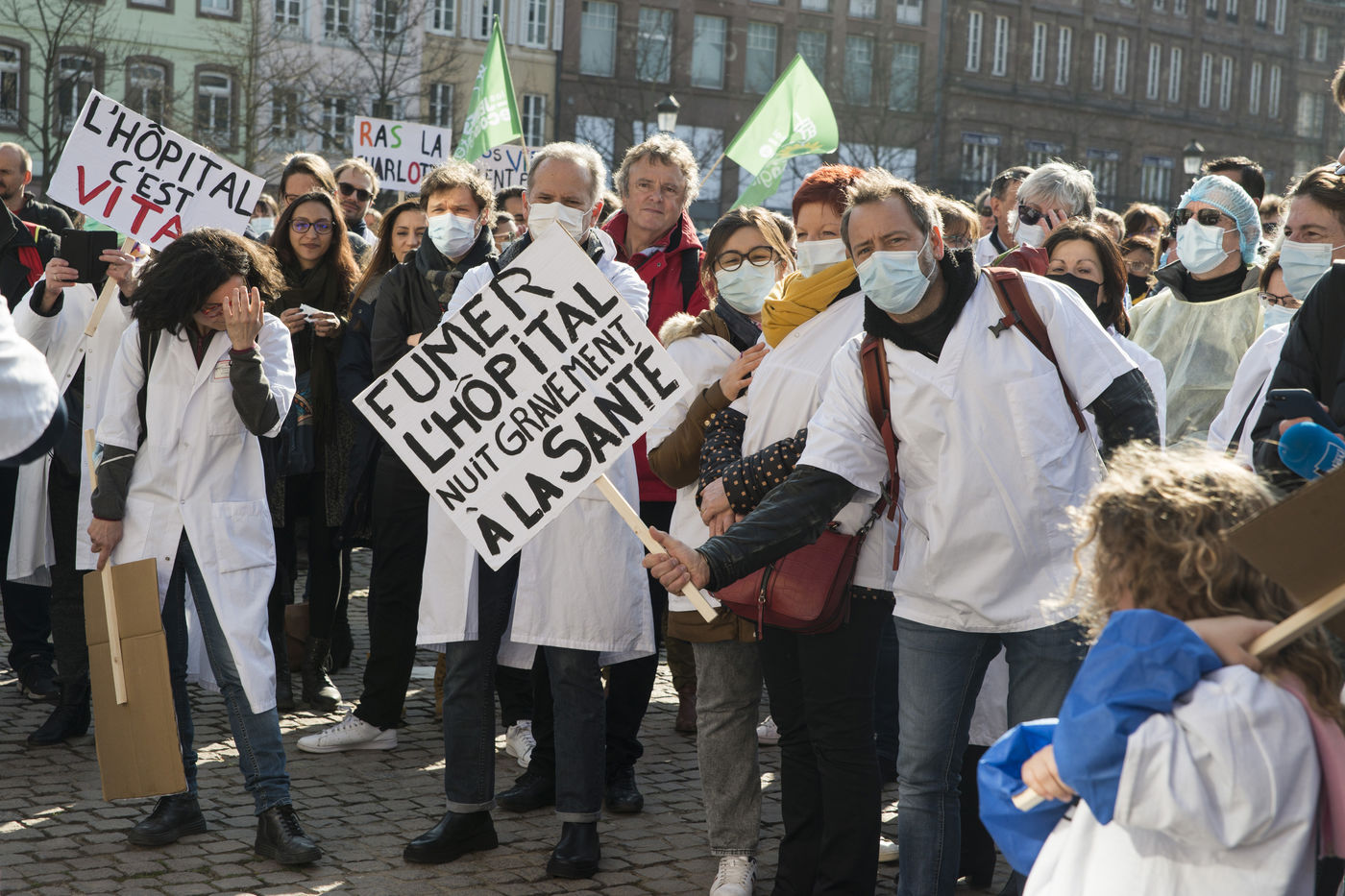 Hospital personel protest to alert on the bad state of the public health services and hospitals in Strasbourg.