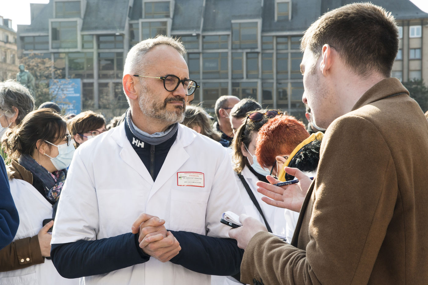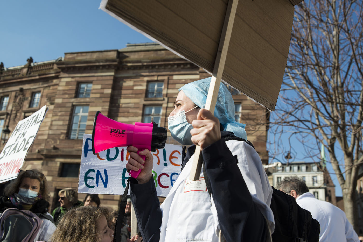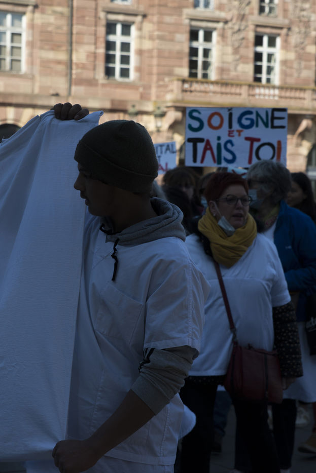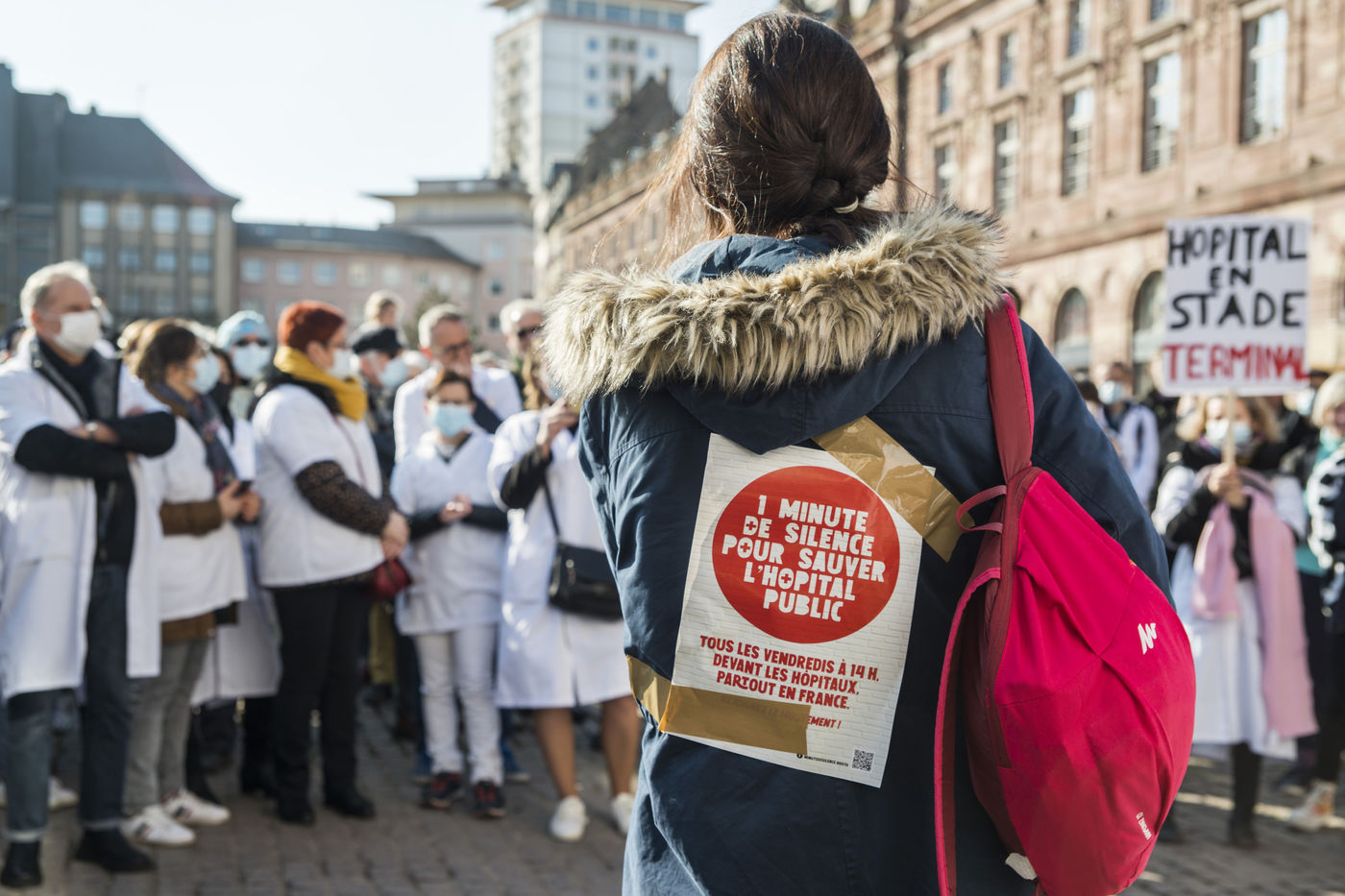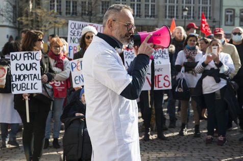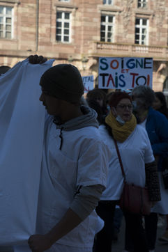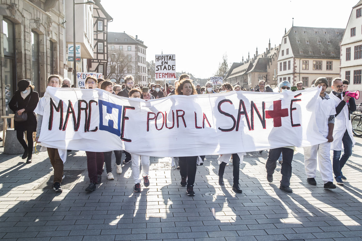 Hospital personel protest to alert on the bad state of the public health services and hospitals in Strasbourg.