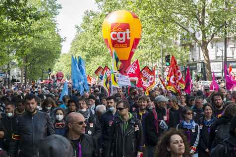 Des milliers de manifestants prennent la rue pour la journée internationale de la lutte des travailleurs et des travailleuses, le 1er Mai, une semaine après la réelection du président Emmanuel Macron.