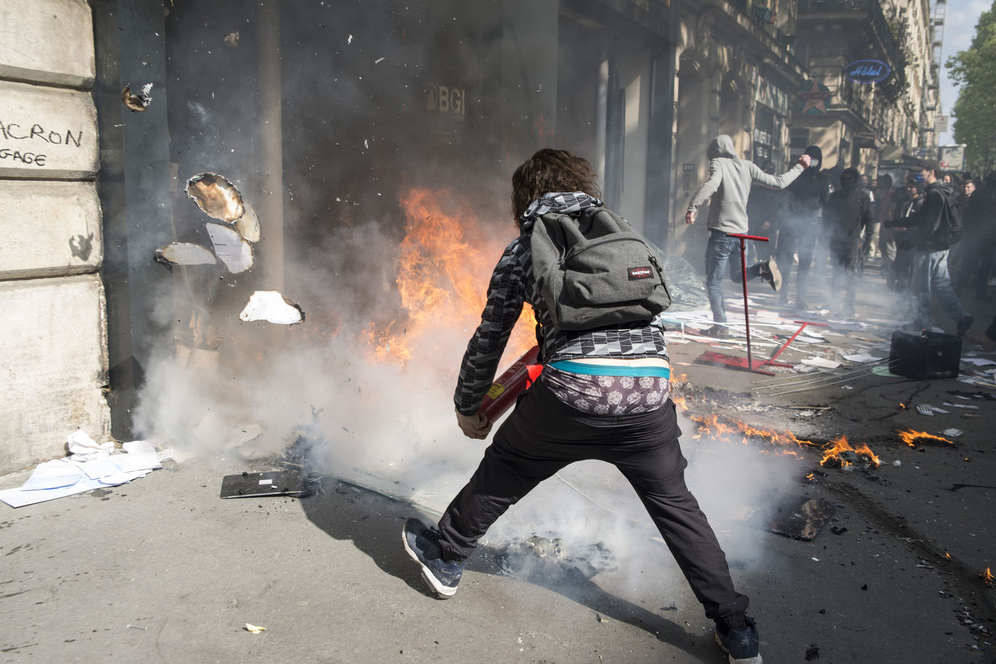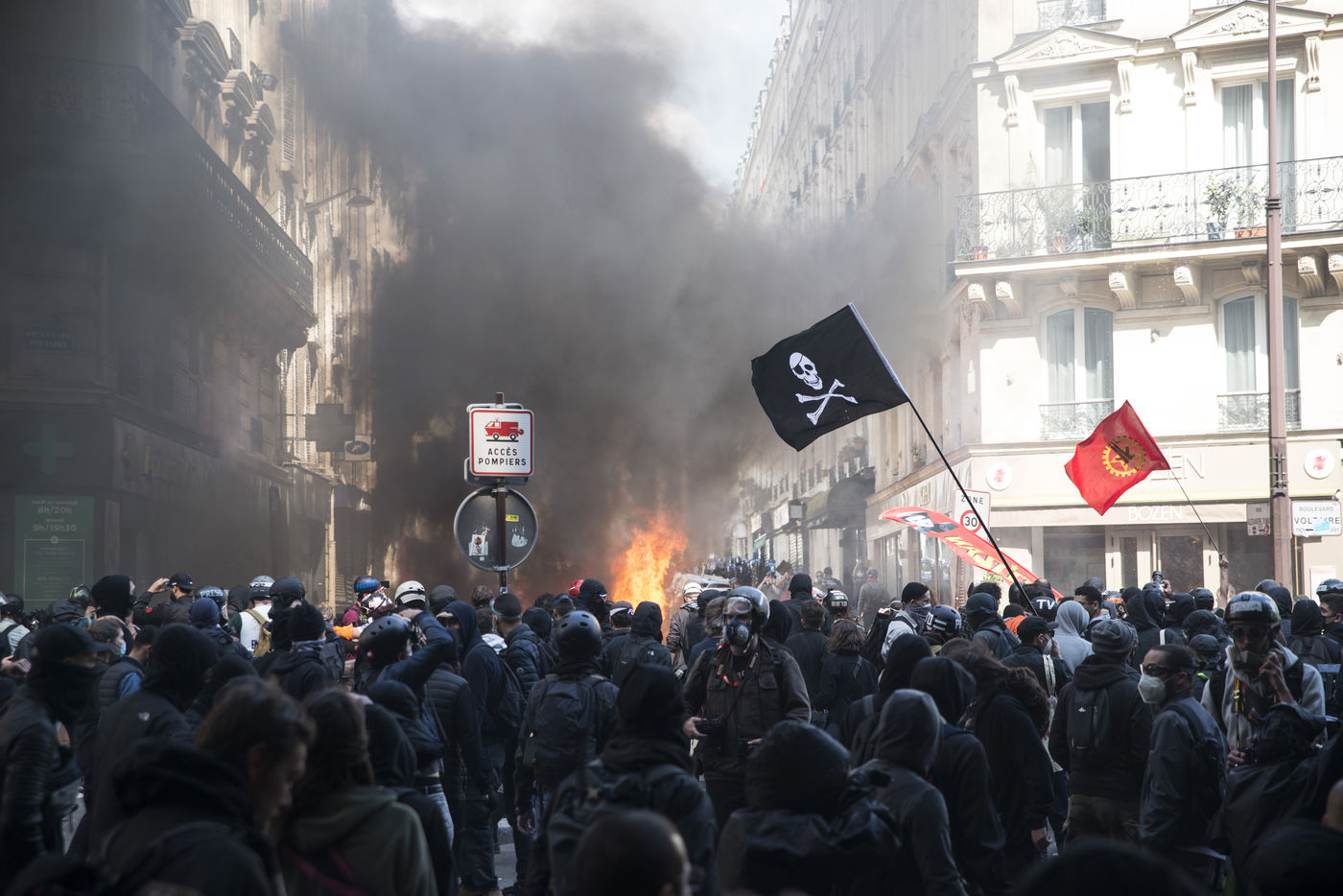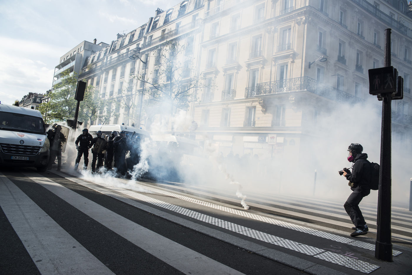 Thousands of protestors demonstrate in the streets of Paris for the international worker's day, a week after the reelection of French president Emmanuel Macron.