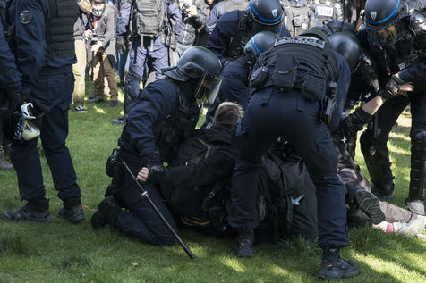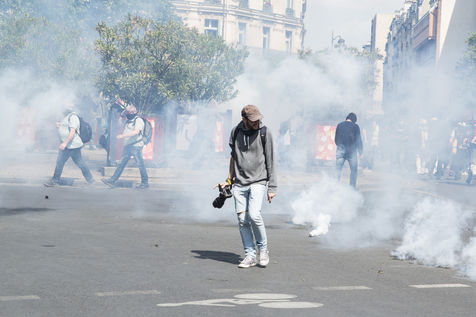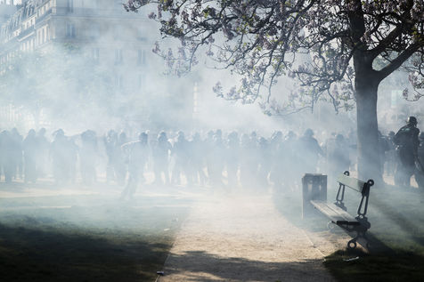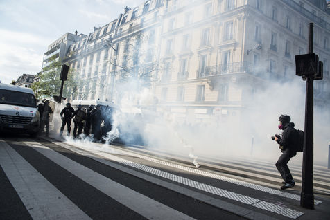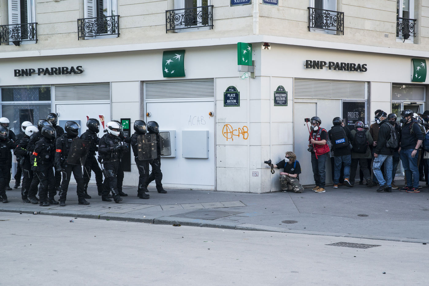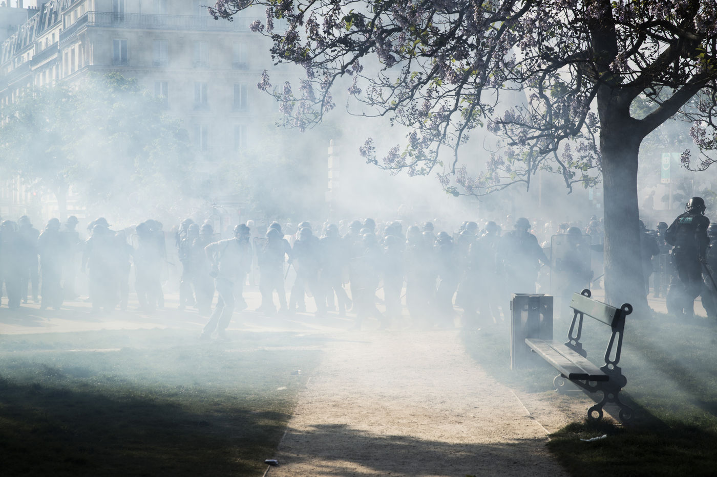 Thousands of protestors demonstrate in the streets of Paris for the international worker's day, a week after the reelection of French president Emmanuel Macron.