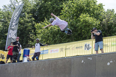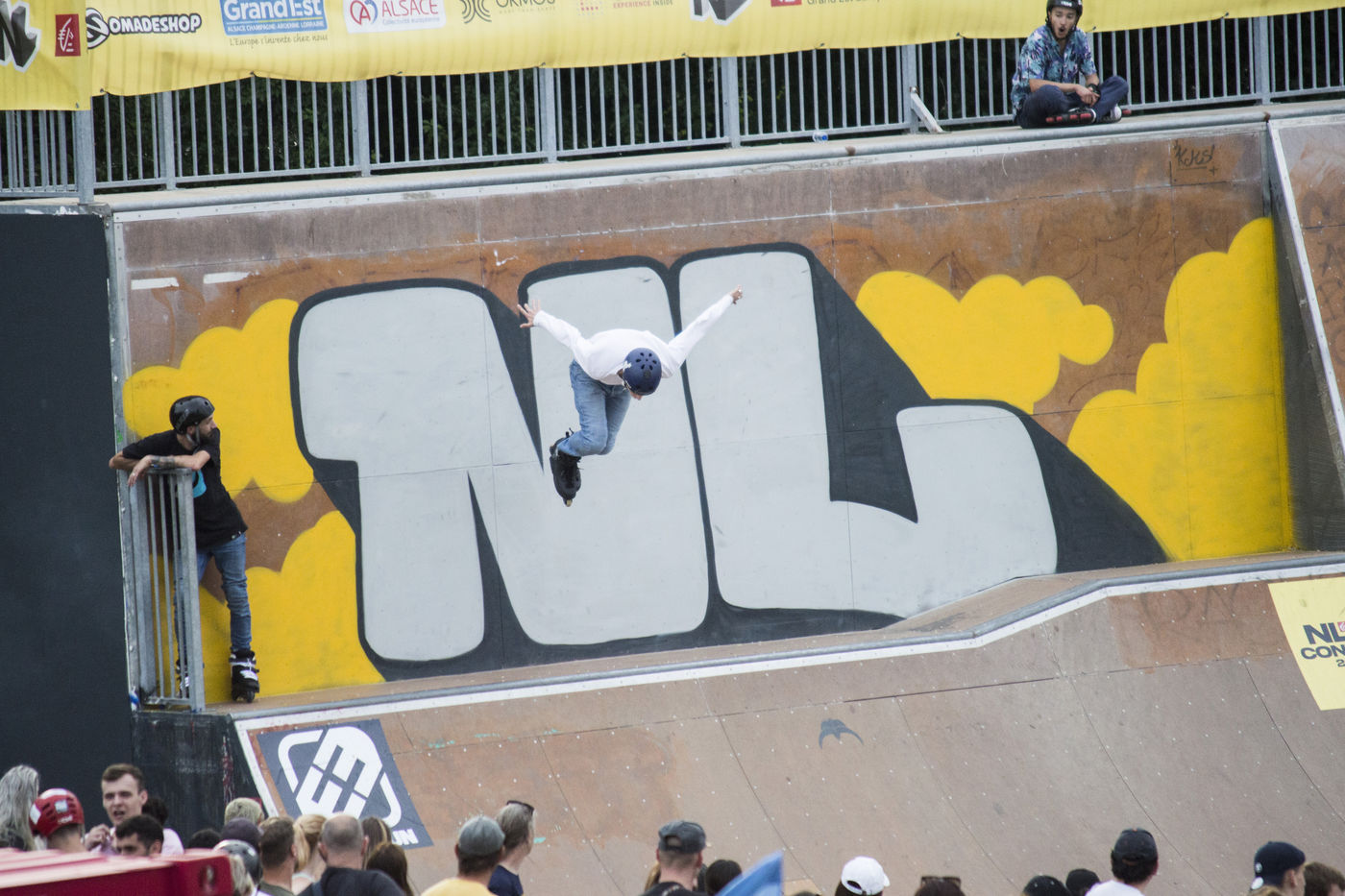 Hundreds of people assist to the first day of the Nouvelle Ligne (NL) Contest, an urban sport competition and urban culture festival in Strasbourg at the Rotonde skatepark.