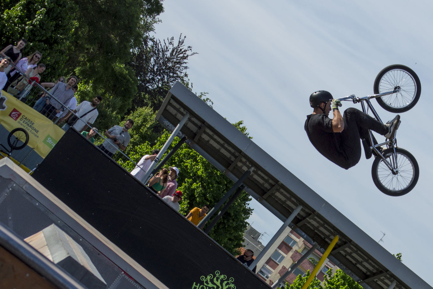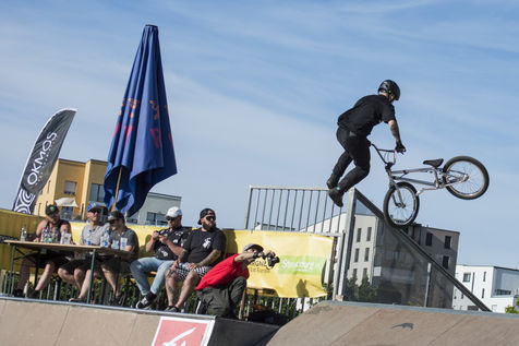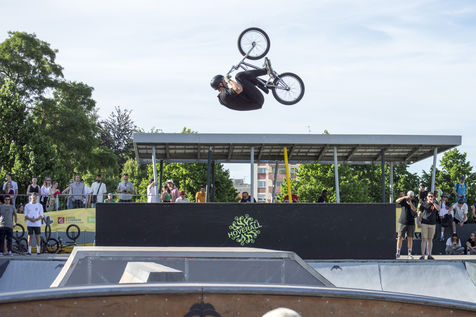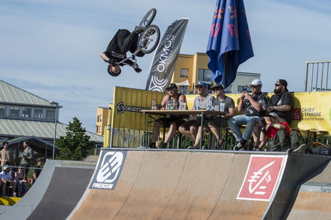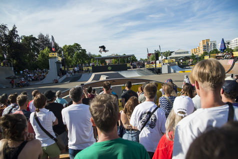 Hundreds of people assist to the second day of the Nouvelle Ligne (NL) Contest, an urban sport competition and urban culture festival in Strasbourg at the Rotonde skatepark.