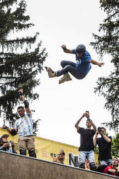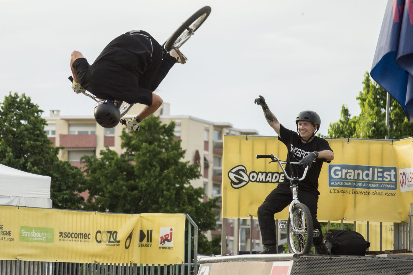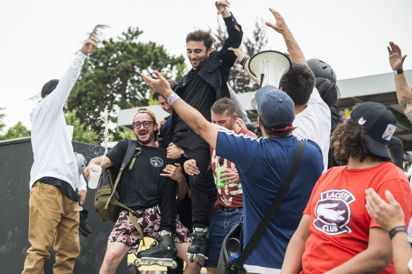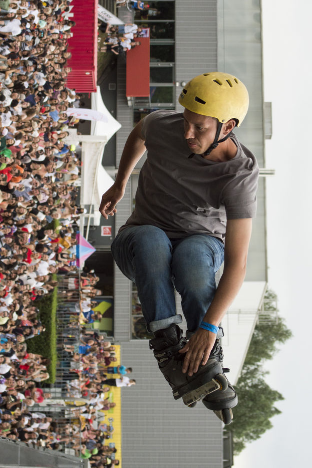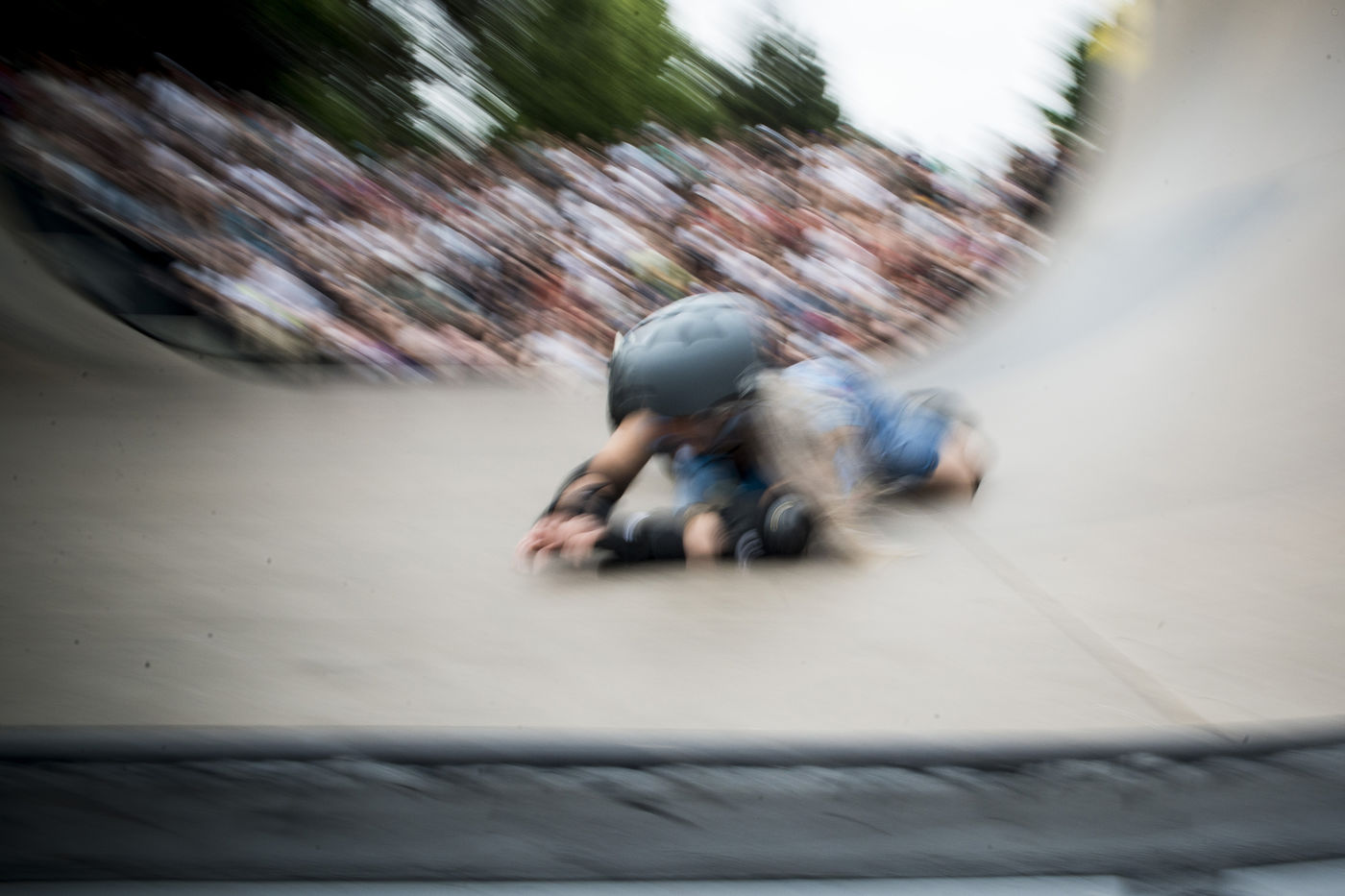 Hundreds of people assist to the third day of the Nouvelle Ligne (NL) Contest, an urban sport competition and festival in Strasbourg at the Rotonde skatepark.