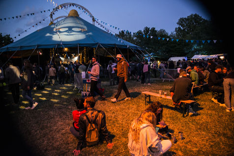 Des centaines de personnes assistent au deuxième jour du Pelpass Festival au Jardin des Deux Rives à Strasbourg pour sa première édition depuis le début de la pandémie de Covid19, avec des concerts, dont de Ichon et The Guru Guru.