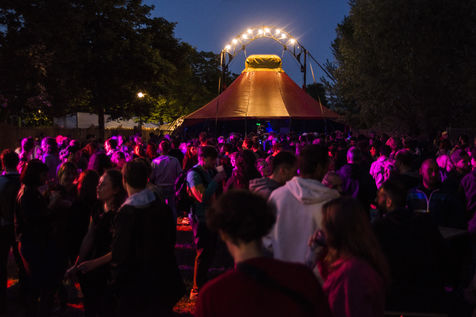 Hundreds of people assist to the second day of the Pelpass Festival at the Jardin des Deux Rives in Strasbourg, for the first edition since the Covid19 pandemic outbreak, with concerts of notably The Guru Guru and Ichon.