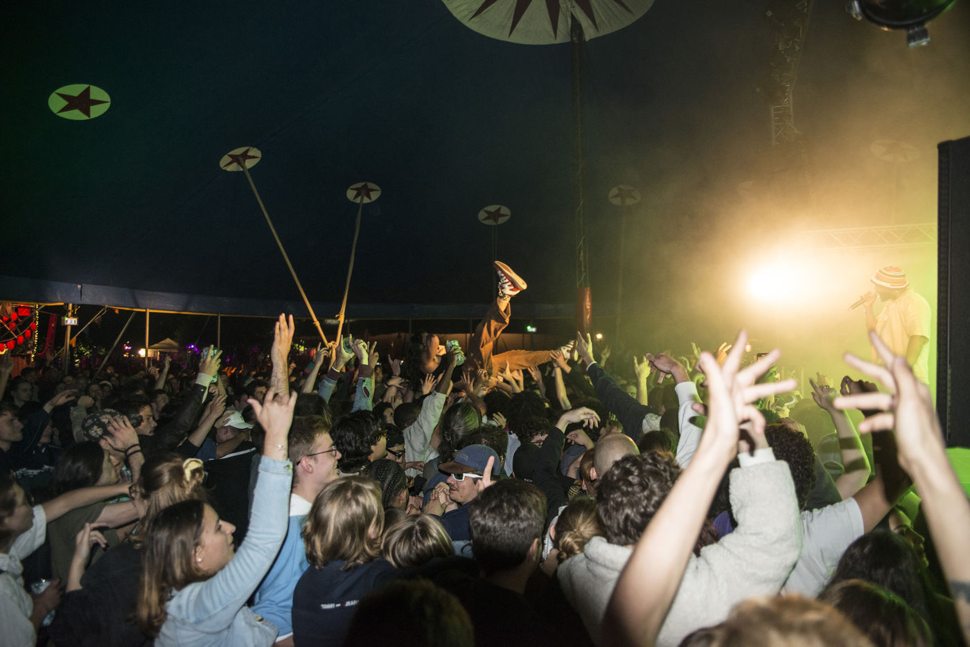 Hundreds of people assist to the third day of the Pelpass Festival in the Jardin Des Deux Rives in Strasbourg with concerts of Aloïse Sauvage, the groupe Makoto San and the swiss rapper Makala.