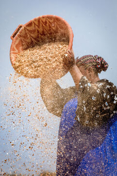 At a second location near in Banjul, we discover a factory that makes peanuts bricks to replace the wood and charcoal traditionally used for cooking.