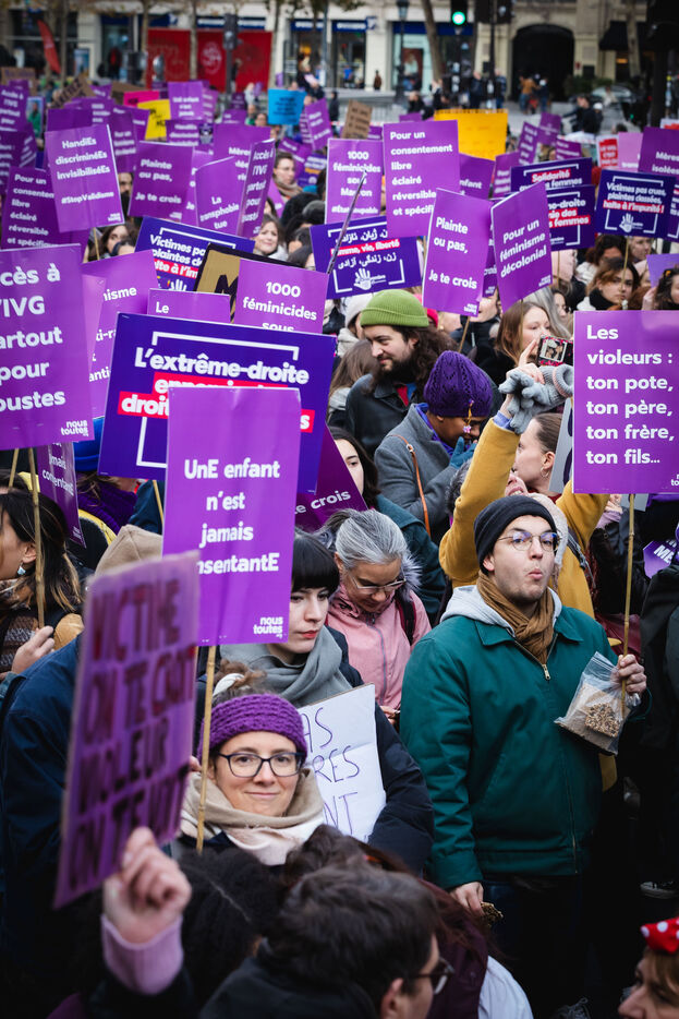 To mark the International Day for the elimination of violence against Women and Gender Minorities, a major march is being organized on November 23, 2024 in cities across France to combat feminicides, sexual violence and all forms of gender-based violence. This series illustrate the gathering in Paris: a march between Gare du Nord and Bastille.