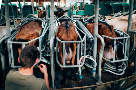 The goats are fed on cereals and forage produced on the farm. Rations are adapted to the needs of the animals according to their age and lactation level.