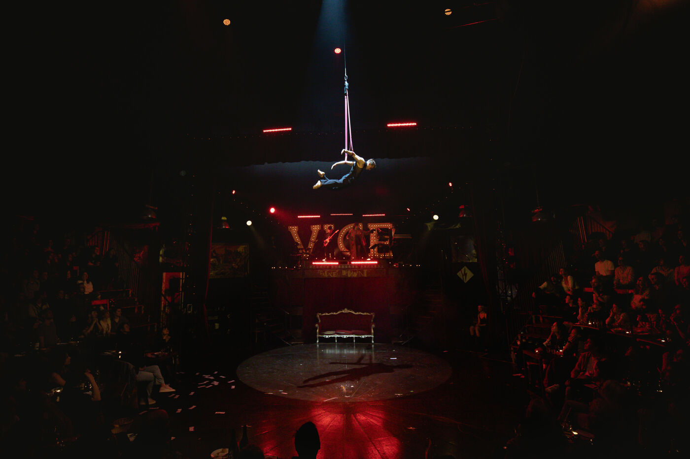 Get ready for total immersion in an extraordinary cabaret. Cabaret Décadent - Revue électrique N°777 transforms the stage into a vortex of lust, chaos and excess. Here, bodies vibrate to saturated techno, souls are lost in the scent of sulfur, and glitter rubs shoulders with the monsters of a society in ruins. Forbidden to under-17s, this hybrid show blends underground circus, sulphurous performances and incandescent poetry for an experience as visceral as it is electrifying.