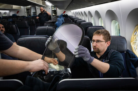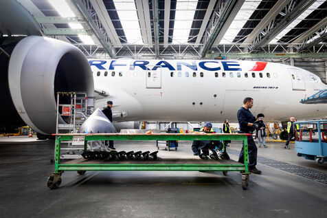 A day with the Air France mechanics who maintain the Boeing B787 in Air France's hangar N°1 at Roissy. Every part of the aircraft is meticulously inspected, and some parts are dismantled (like this engine, to be overhauled and cleaned). Sometimes it's necessary to change parts (in the cabin or on the engines), like changing the window. Each part of the aircraft is visible in a completely unstructured way on a tablet, which simplifies the overall vision of each element and makes it easier to order the parts to be changed. Each gesture must be extremely rigorous and precise.
