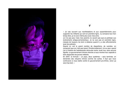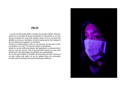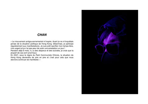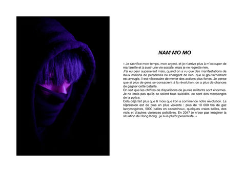 Thus, this documentary project mixing photographic portraits and interviews aims to give a voice to Hong Kong activists on these issues while allowing them to present themselves under a pseudonym and hide their identity, once again representing the fear they feel.