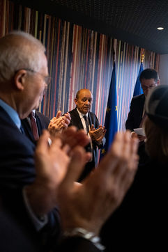 Jean-Yves Le Drian, Minister for Europe and Foreign Affairs, and Amélie de Montchalin, Secretary of State for European Affairs, take part in the inauguration of the Brittany Ferries training centre in Saint-Malo.
