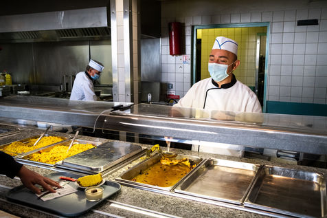 Il déjeune avec des étudiants boursiers bénéficiant de ce nouveau dispositif et échanger également avec eux sur la manière dont ils appréhendent la rentrée dans le contexte de crise sanitaire.