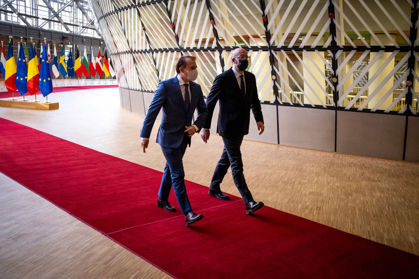 Vendredi 12 Frévrier 2021, le Président du Conseil Européen Charles Michel reçoit Florin Citu, Premier Ministre de la Roumanie, Valdis Dombrovskis, Vice-président de la Commission Européenne, et Thierry Breton, Commissaire Européen au Marché Intérieur.