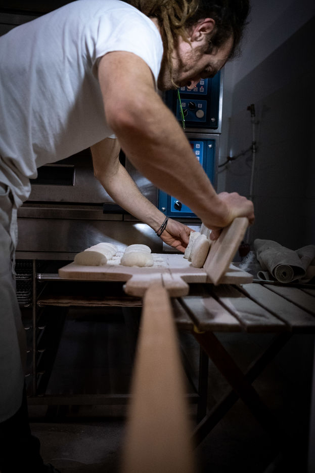 Tom is a baker and master miller in the Brussels area. He was a manager of musical artists when he discovered the old water mill in Dilbeek (Flanders), the village of his childhood, and became a master miller. This was followed by a professional reconversion to the bakery, which led him to undertake his Kiekebich project. He makes bread with a traditional process of milling and baking in a wood-fired oven using organic and local ingredients. "I offer my own interpretation of bread, good, healthy and nutritious". Always friendly and smiling, he has chosen to bring a second originality to his project, which is not always unanimously accepted, that of producing only to order. To be able to taste his bread, it is therefore necessary to place an order the day before. "I used to work in classic bakeries and they threw away less than 20% of their production. It made my heart ache."