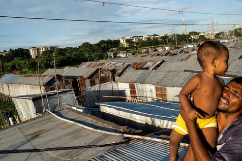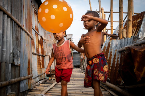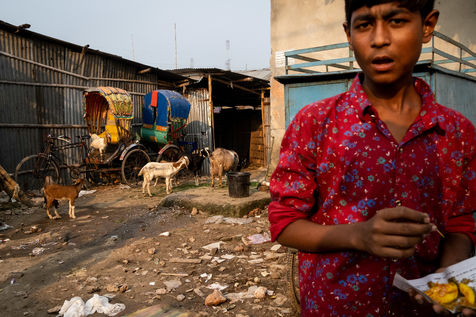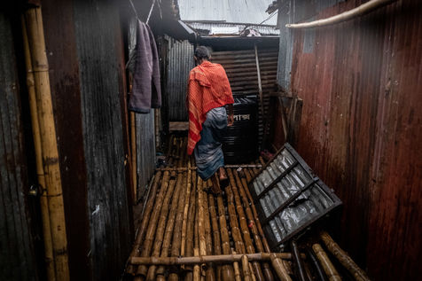 Le dérèglement climatique sera bientôt la première cause des déplacements de population sur la planète. Nous avons déjà pu le constater à l'échelle du Bangladesh en nous rendant dans le bidonville de Duari Para aux abords de Dhaka qui est la capitale du Bangladesh et l'une des villes les plus densément peuplées au monde. Ici, des familles qui vivaient paisiblement de l'agriculture dans le sud du pays s'entassent désormais dans des taudis. Le bidonville étant construit sur pilotis aux abords d'un lac, les inondations restent une menace puisque leurs habitations sont régulièrement immergées pendant les périodes de fortes pluies.