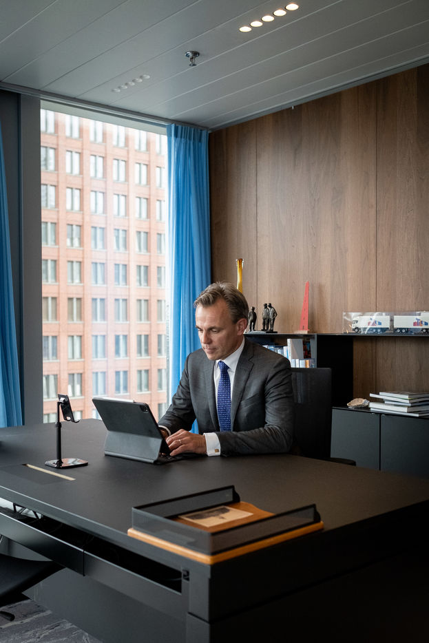 Portraits of Mark Harbers, Minister of Infrastructure and Water Management of the Netherlands.
