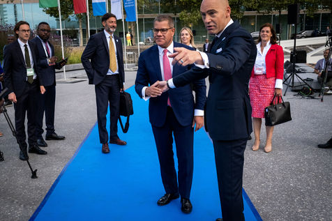 Present are, among others, Macky Sall, President of Senegal and Chairperson of the African Union, Ban Ki-moon , 8th Secretary General of the United Nations, Félix Tshisekedi , President, Democratic Republic of Congo, Mark Rutte , Prime Minister of the Netherlands, Nana Akufo-Addo, President of Ghana, Chrysoula Zacharopoulou, Secretary of State of France for Development, Francophonie and International Partnerships, Ngozi Okonjo-Iweala , Director of the World Trade Organisation, Frans Timmermans, Vice-President of the European Commission.
