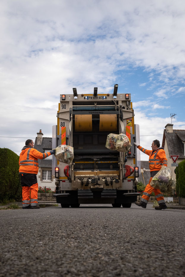 Reportage le collectage des déchets et les agents de propreté urbaine dans l'agglomération de Dinan en Bretagne.