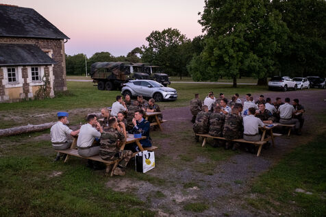 Reportage on the training at the Ecole militaire interarmes in Saint-Cyr Coetquidan in Morbihan, Brittany. The EMIA recruits its students from among non-commissioned officers and non-commissioned soldiers selected by competitive examination. Cadets follow a two-year training course. At the end of the first year, they are appointed to the rank of second lieutenant, then lieutenant at the end of the second year.