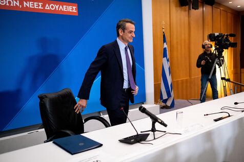 Greek Prime Minister Kyriakos Mitsotakis gives a press conference on his economic policy
