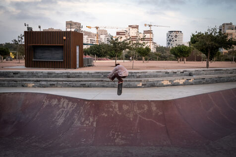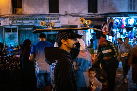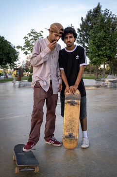 It's 5.30 p.m. in Casablanca, and the huge Nevada skatepark is bustling with more than fifty happy children on scooters and rollerblades. Now considered to be the biggest skatepark on the African continent, this space is a lively place for families and young people. On the side, Ayoub, Yassine, Akram, Mouad, Oussama and the others skate, as they do almost every day. These passionate young people devote almost all their time to skateboarding.