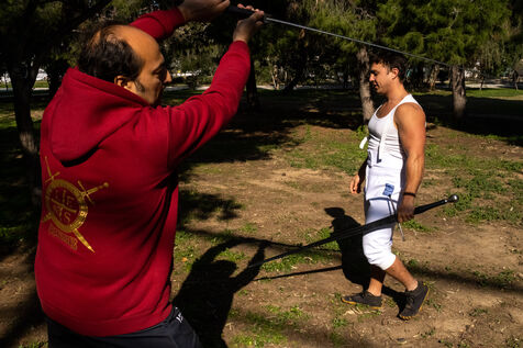 The Leontes Academy of European Historical Martial Arts in Athens is a school where students of all ages learn ancient Greek and Byzantine combat techniques using weapons, shields, armour and phalanxes. To do this, they have studied numerous historical texts, military manuals and artefacts from the period. As well as learning the fighting techniques involved in a sport similar to fencing, they are beginning to produce historical reconstructions.