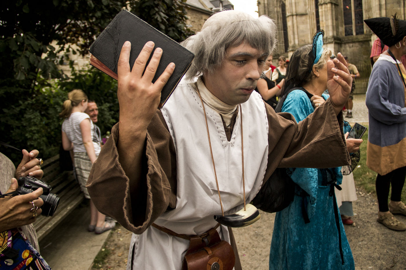 The streets of the fortified town of Dinan in Brittany are full of fun and games. On every street corner, you can see people dressed up as troubadours, knights or monks from the medieval period. Some of them, passionate about this period, have been preparing their costumes for many months, in order to amaze young and old alike, who have come specially to the Côtes-d'Armor to attend the Fête des Remparts.