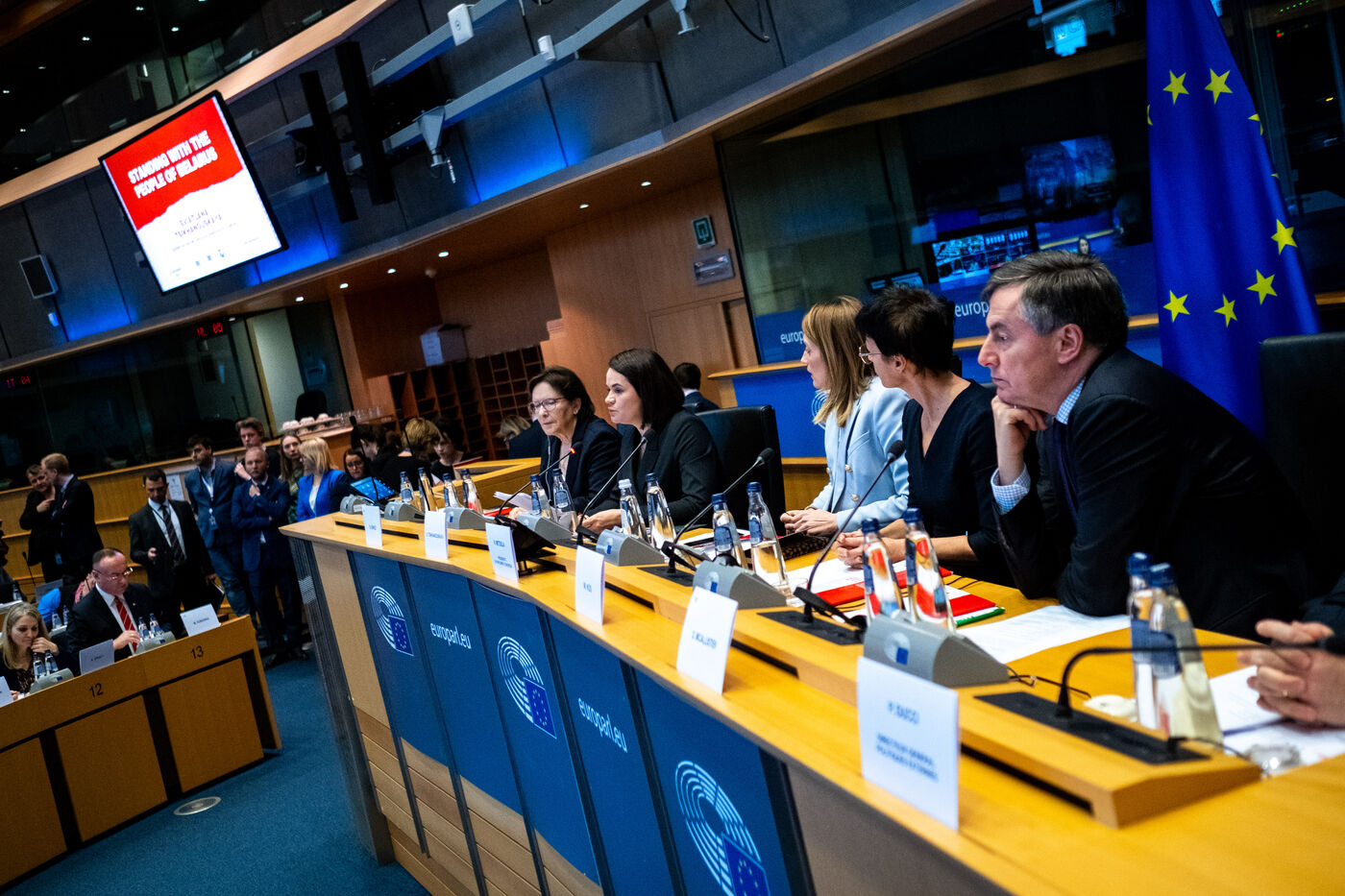Conférence de haut niveau sur la Biélorussie intitulée "Se tenir aux côtés du peuple bélarusse" au Parlement Européen à Bruxelles avec la Présidente du Parlement Européen Roberta Metsola, la Commissaire européenne à l'Elargissement et à la Politique de voisinage Marta Kos et la Présidente du Conseil de coordination pour la Biélorussie Svetlana Tikhanovskaïa.