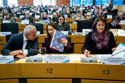 Second discussion on the EU's southern neighbourhood, with the participation of Princess Rym Ali, President of the Anna Lindh Foundation, Dubravka Šuica, European Commissioner for the Mediterranean, and Nasser Kamel, Secretary General of the Union for the Mediterranean.
