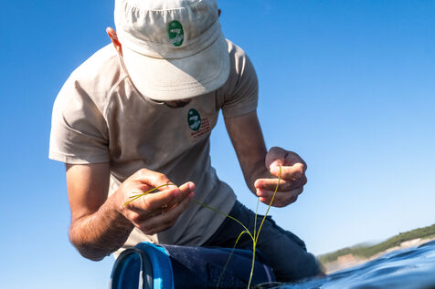 Reportage à Gruissan dans le département de l'Aude sur la remarquable biodiversité marine de l'espace lagunaire l'étang du Grazel dans le Parc naturel regional de la Narbonnaise en Méditerranée classé Natura 2000.