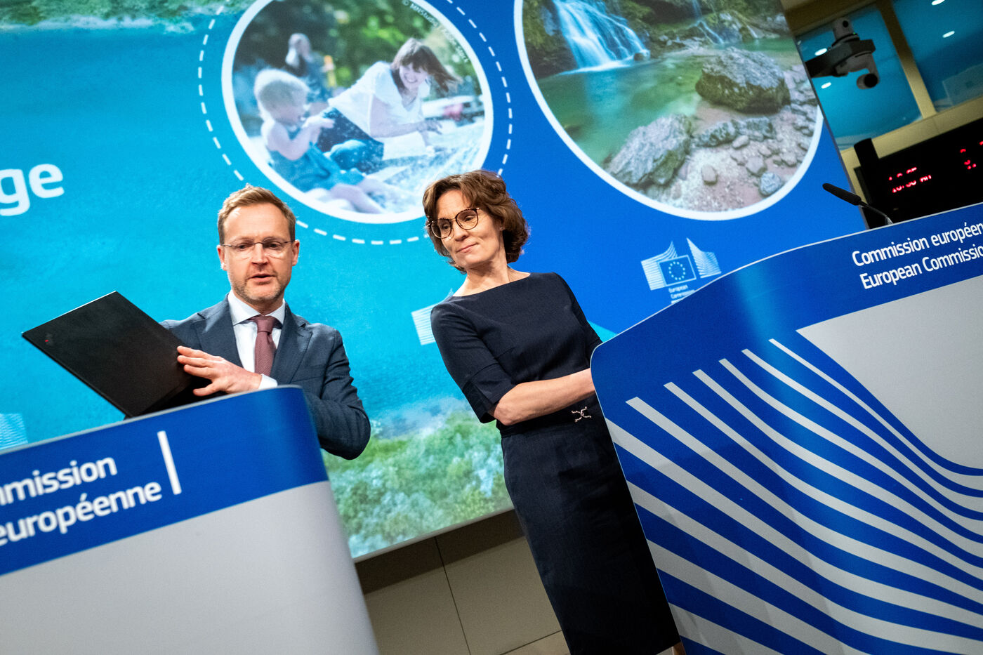 Conférence de presse de la Commissaire européenne chargée de l'environnement, de la résilience de l'eau et de l'économie circulaire compétitive Jessika Roswall.