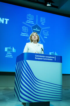 Press conference of Executive Vice-President of the European Commission for Tech Sovereignty and Security and Democracy Henna Virkkunen on the AI Continent Action Plan. The AI Continent Action Plan outlines key areas where efforts need to intensify to make Europe a leading Artificial Intelligence Continent.