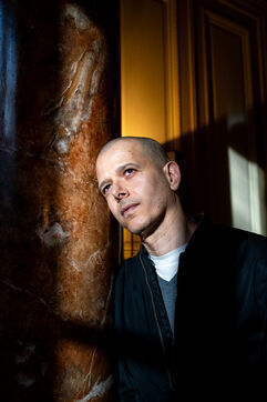 Portrait of the Moroccan writer Abdellah Taïa at the residence of the French Embassy in Brussels on the occasion of the presentation of the Belgian Goncourt Prize.