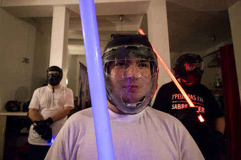 C'est dans une salle de sport à l'ambiance détendue dans le quartier de Saint-Denis que des jeunes pratiquent le Sabre Laser comme ils pratiqueraient un autre art martial. Ici, pas de portraits de grands maîtres accrochés aux murs mais des affiches de la saga Star Wars.