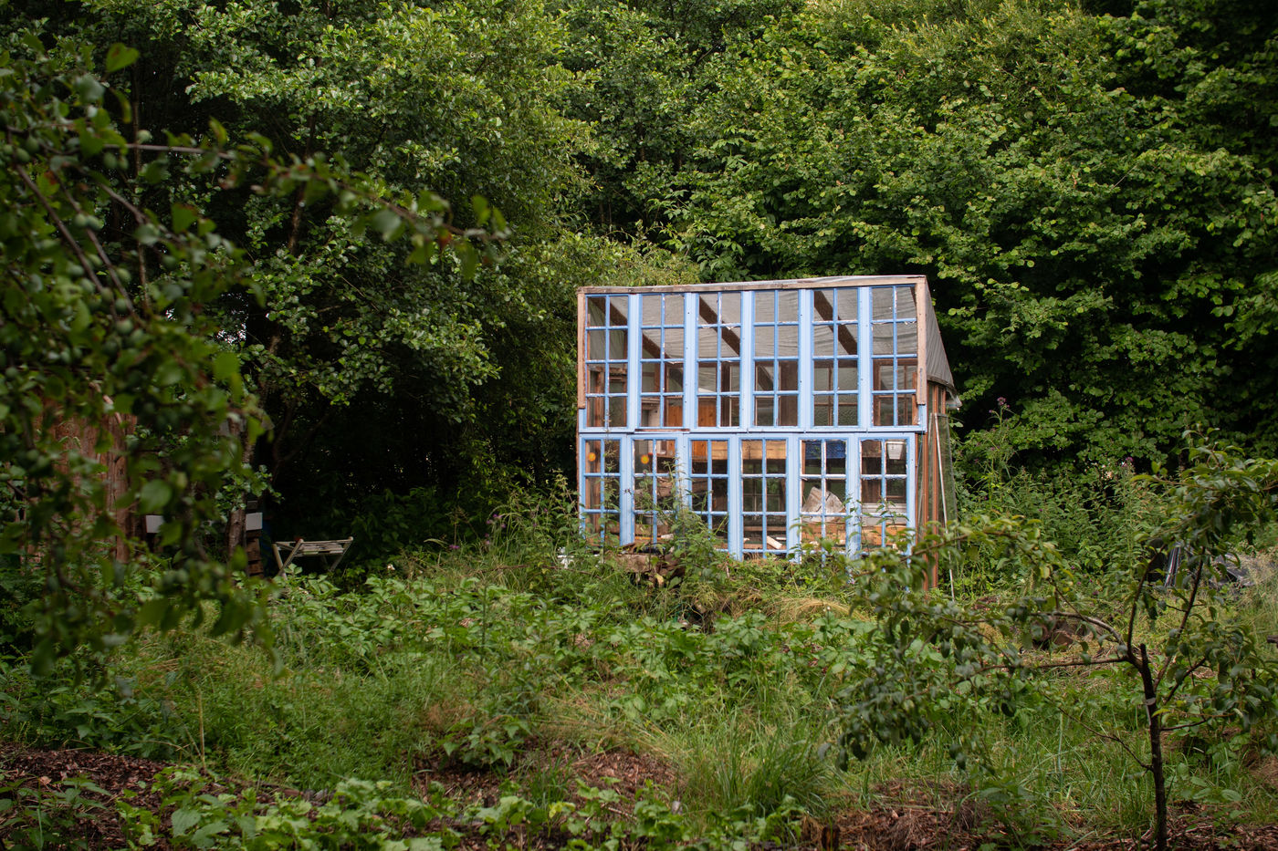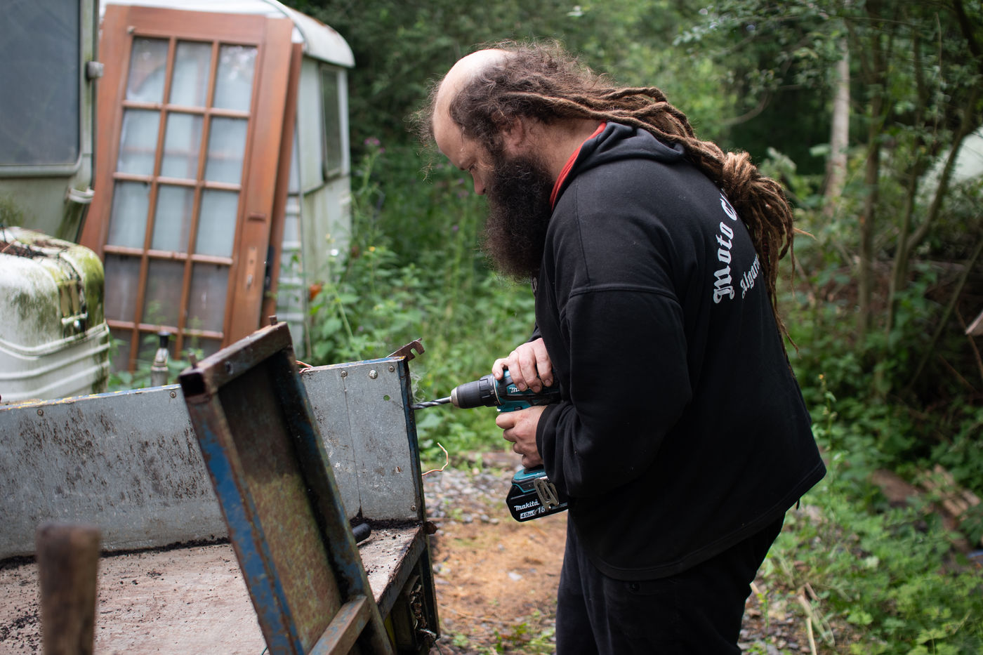In the north of Mayenne is "L'écolieu Les Loups". The objectives of Cyril, 36 years old, for the ecolieu are "permaculture, recovery and creation". "L'écolieu Les Loups" is a place of passage, meetings and research of ecological transitions. In 2017, Cyril embarked on this adventure and today he lives on the ecolieu all year round with his dogs in a new forest bordered by a small river entirely wooded with more than 600 trees. He regularly welcomes people who wish to discover and experience a different life. Cyril is looking for a simple and more autonomous life. He is deeply anti-capitalist and through practice he seeks to rethink the economic, political and social system in which he wishes to live today. For him, access to knowledge should be universal. Cyril is already leading an autonomous life in some aspects through various experiments at the "Les Loups ecolieu".