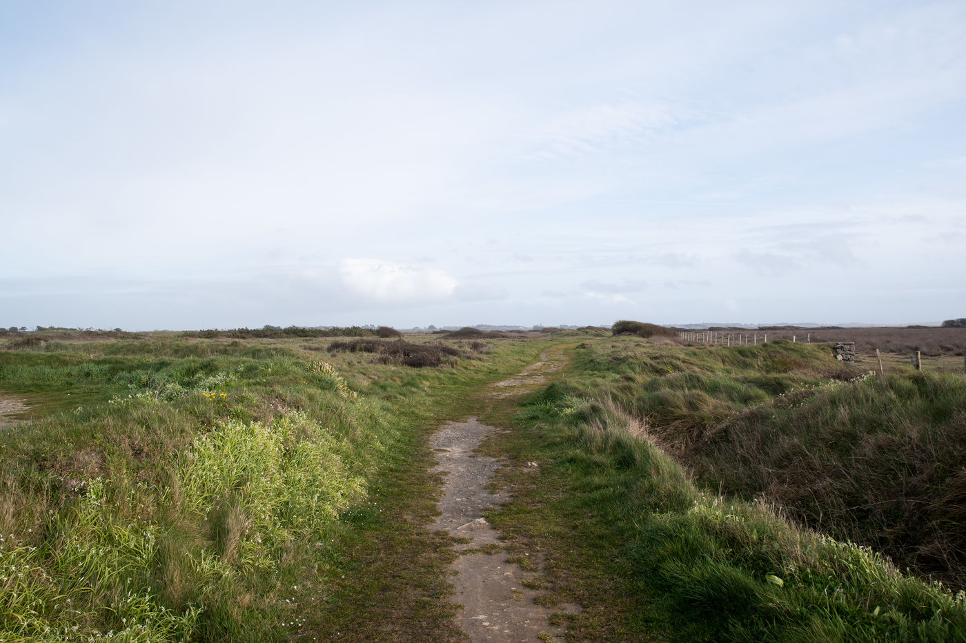 Des paysages de Treguennec au lieu dit Prad ar C'Hastell à deux pas de l'ocean, autour des vestiges de l'ancienne usine de concassage de galets active durant la seconde guerre mondiale. Du lithium se trouve dans les sous-sols de cette zone humide protégée, classée Natura 2000.